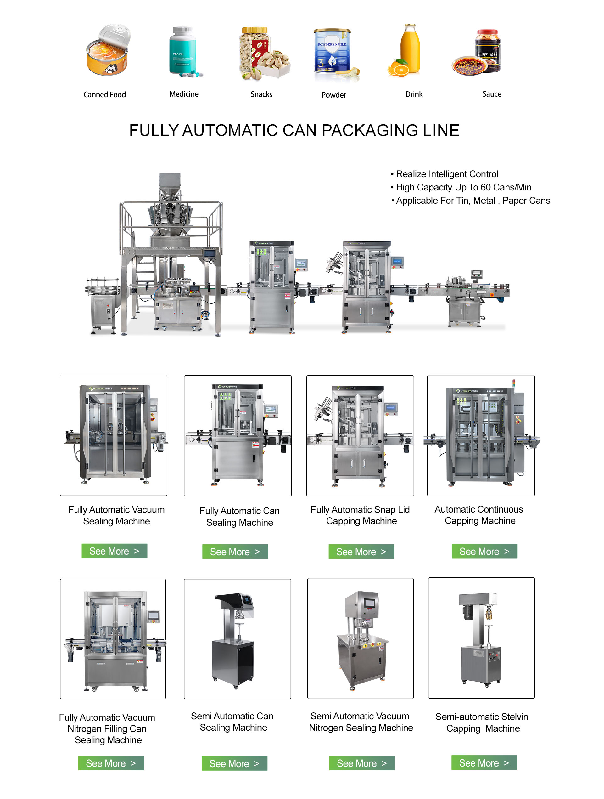 주요 제품:통조림 기계, 진공 통조림 기계, 스크류 캡핑 기계, 포장 라인, 로봇 정렬 라인